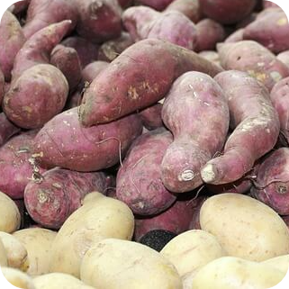 고구마는 영어로 sweet potato입니다. 고구마는 메꽃과의 여러해살이풀에 속하며 땅속에서 자랍니다. 우리가 먹는 고구마는 뿌리 부분입니다. 이런 종류의 뿌리를 덩이뿌리라고 부릅니다. 고구마는 척박한 땅에서도 잘 자라는 구황작물 중 하나입니다. 가을이 제철인 고구마는 맛이 달콤해서 모두가 맛있게 먹을 수 있습니다.